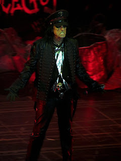 I saw Alice Cooper on August 9 at the Akron Civic Theatre. I have to say, that man puts on a hell of a show. For a guy in his 60s, he can still jump around and his voice sounds great. He sang a lot of his classics plus threw in some 80s and 90s songs. He also did a song form his soon to be released album Welcome 2 My Nightmare. The only real surprise was that he didn't sing Welcome To My Nightmare.